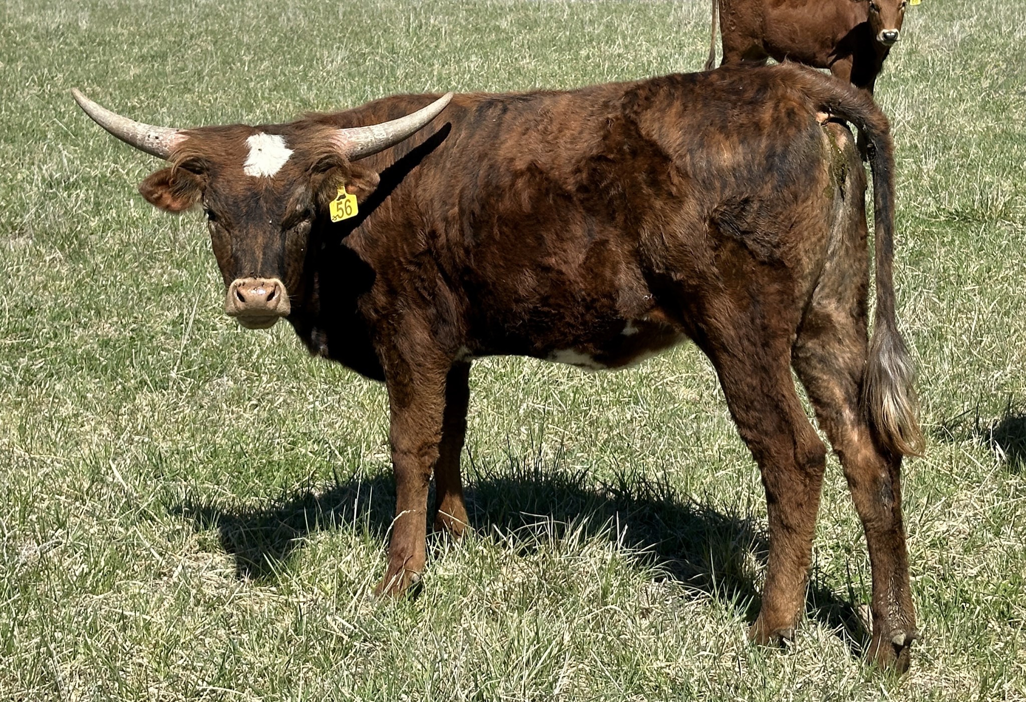 Fancy brindle Kid Rock daughter whose horns have a lot of twist!