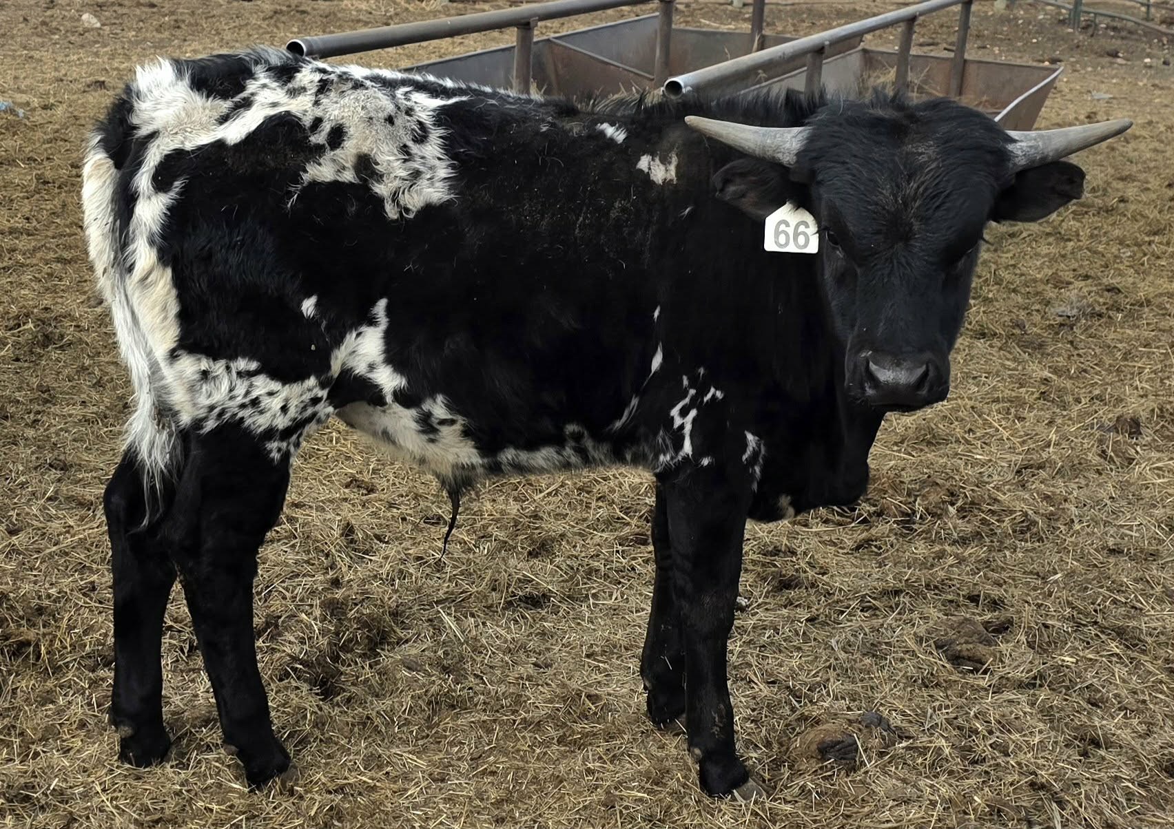 One of the few Del Charro prospects available (The ONLY true black). This young bull checks all the boxes for someone wanting to add color, conformation and horn to their program. Del Charro was a 2-time horn champion, winning 2 triple bronze awards at the Horn Showcase. My wife says, "don't sell him", so we might have to load him after dark! Call me any time 605-381-3998
