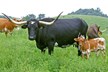 Prostey Tibb is a beautiful parker brown that is just beginning to melt into that beautiful coat. She had extreme backward and downward horn direction when she was young, and Darol said it was the most extreme he has ever raised. The beautiful thing is she's throwing that same horn shape on all of her offspring. Prostey Tibb gave us a beautiful Saddlehorn heifer on July 8, 2018. She is a beautiful black and white paint color that is a knock out! We named her Side Saddle. In 2019 she gave us a beautiful black with frosty specks also out of Saddlehorn that we are thrilled with as well. In 2020 & 2021 she gave us beautiful bull calves out of Cowboy Flair that have a chance to be a herd sire. She is bred back to Cowboy Flair for a Fall 2022 calf.