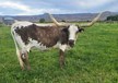 DSCC Black Ruffles is a young black and white lineback heifer. Her sire is an awesome son of Cowboy Tuff Chex (101.25″) out of FL Rio Maxine (80.0″). Her dam is a beautiful grulla cow with a pedigree full of grulla animals both top and bottom. Black Ruffles has 8 over 80 inch animals in her pedigree including one over 100 inches and one over 90 inches. One 100 inch bull (Cowboy Tuff Chex 101.25), one 90 inch cow (BL Rio Catchit 97.5), one 80 inch bull (JP Rio Grande 80.875) and three 80 inch cows in the pedigree (BL Poco Bueno 80.0, LCR Buena Joya 80.875, and FL Rio Maxine 80.0). Black Ruffles was AI'd to TCC Houdini on 11/10/2018 and is now being exposed to our horn showcase champion, DSCC Tombstone.